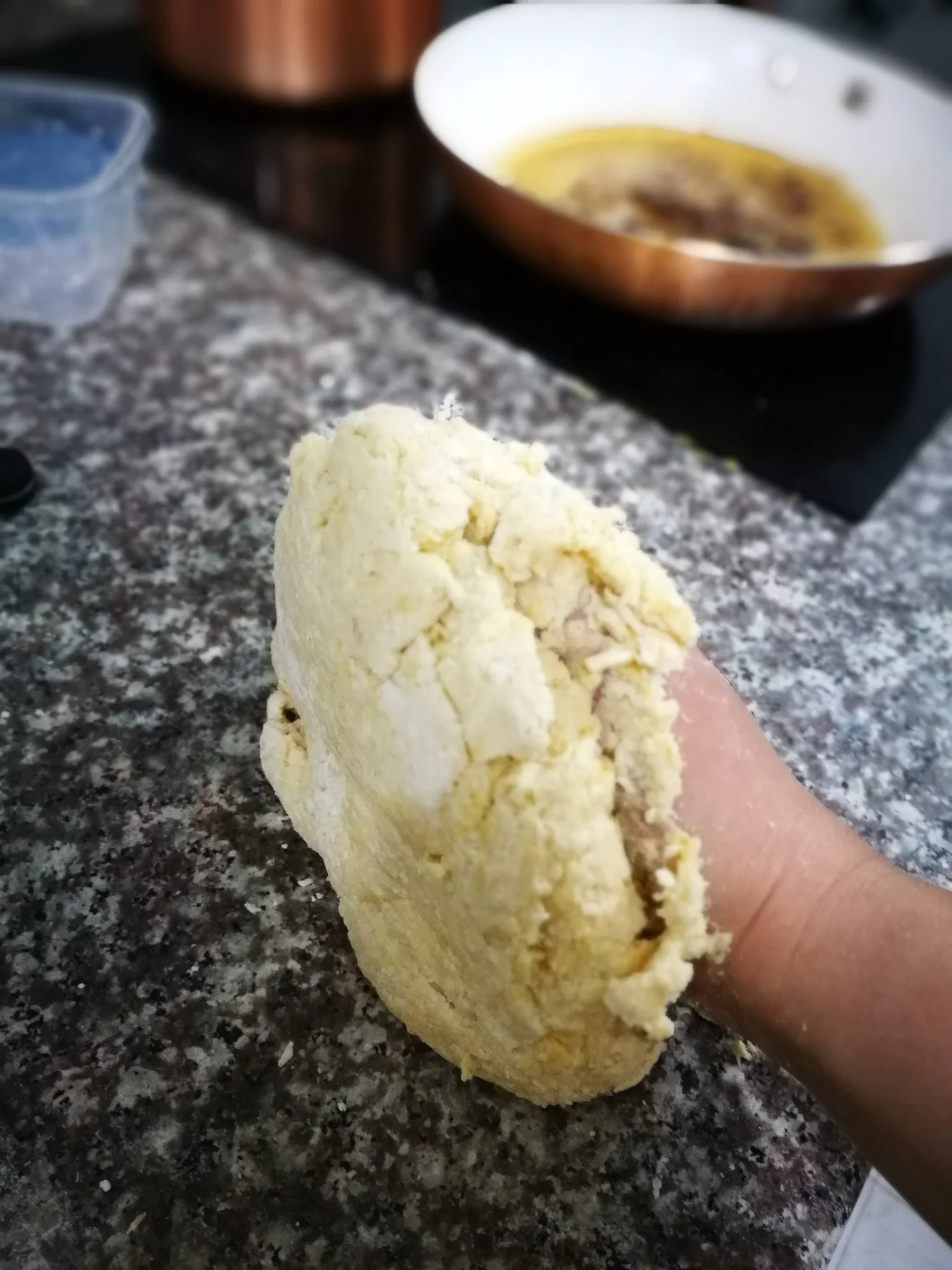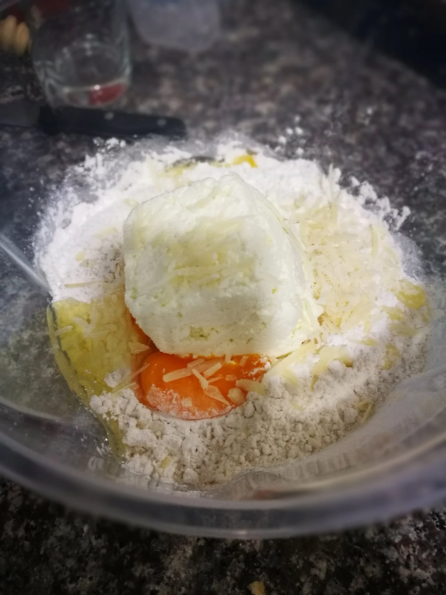 Harina, ricotta, grana padano, sal y huevo fueron rápidamente mezclados,formados y cortados en almohaditas de felicidad.