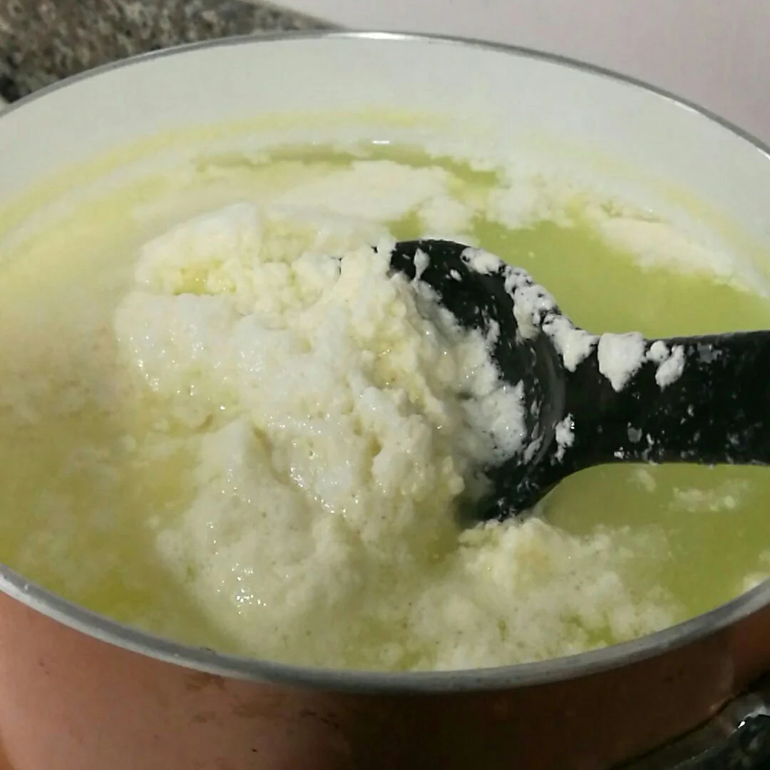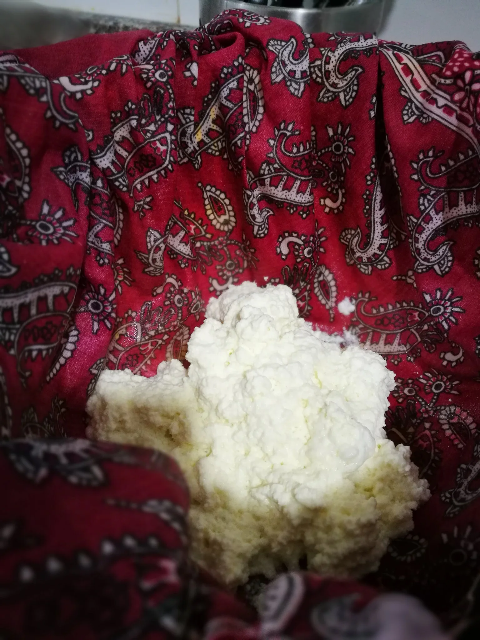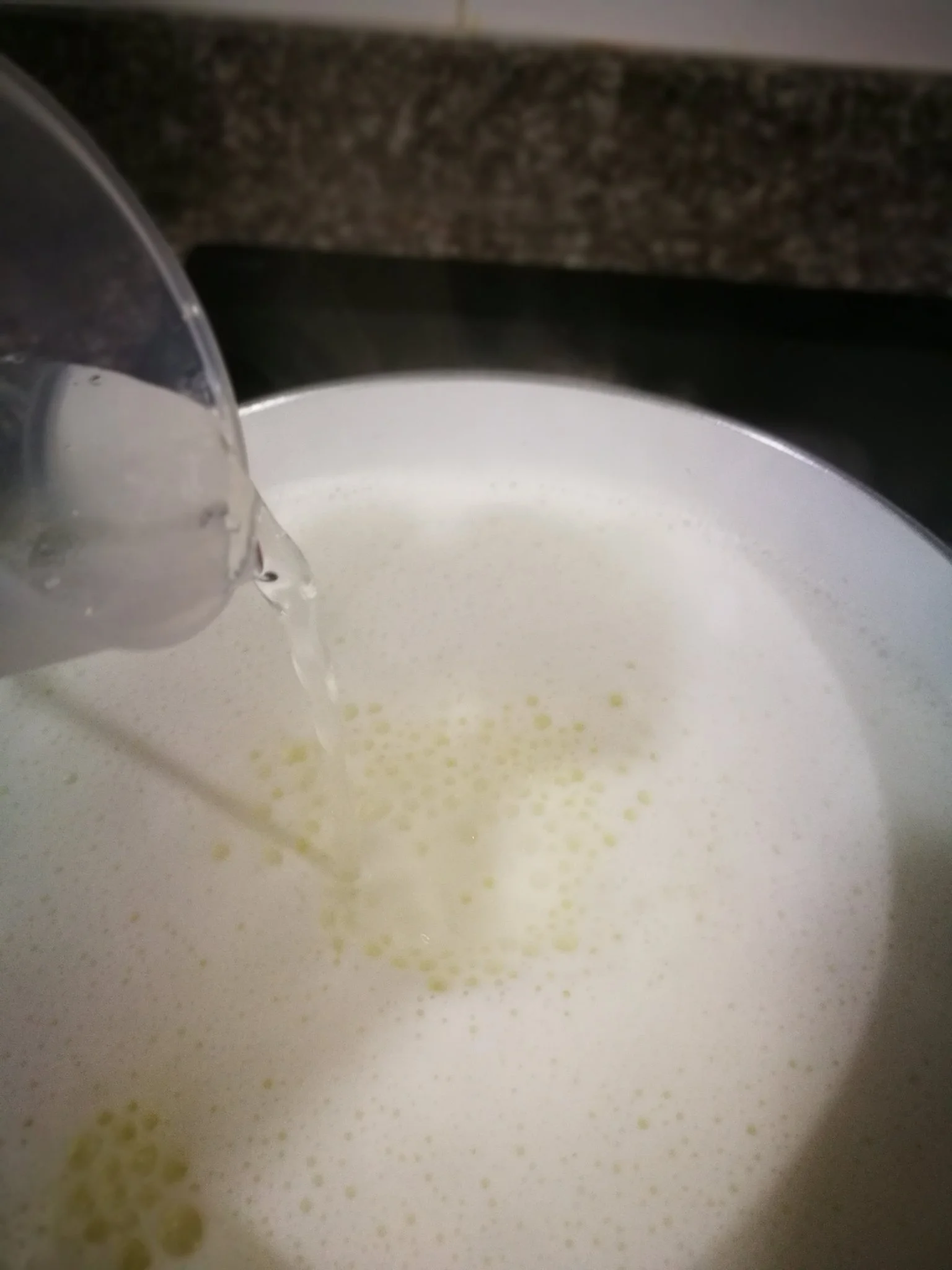 ¿Qué ha pasado en los últimos 40 minutos? UUUH MUCHAS COSAS. Agregué un poco de vinagre blanco en esa olla de leche tímidamente humeante...