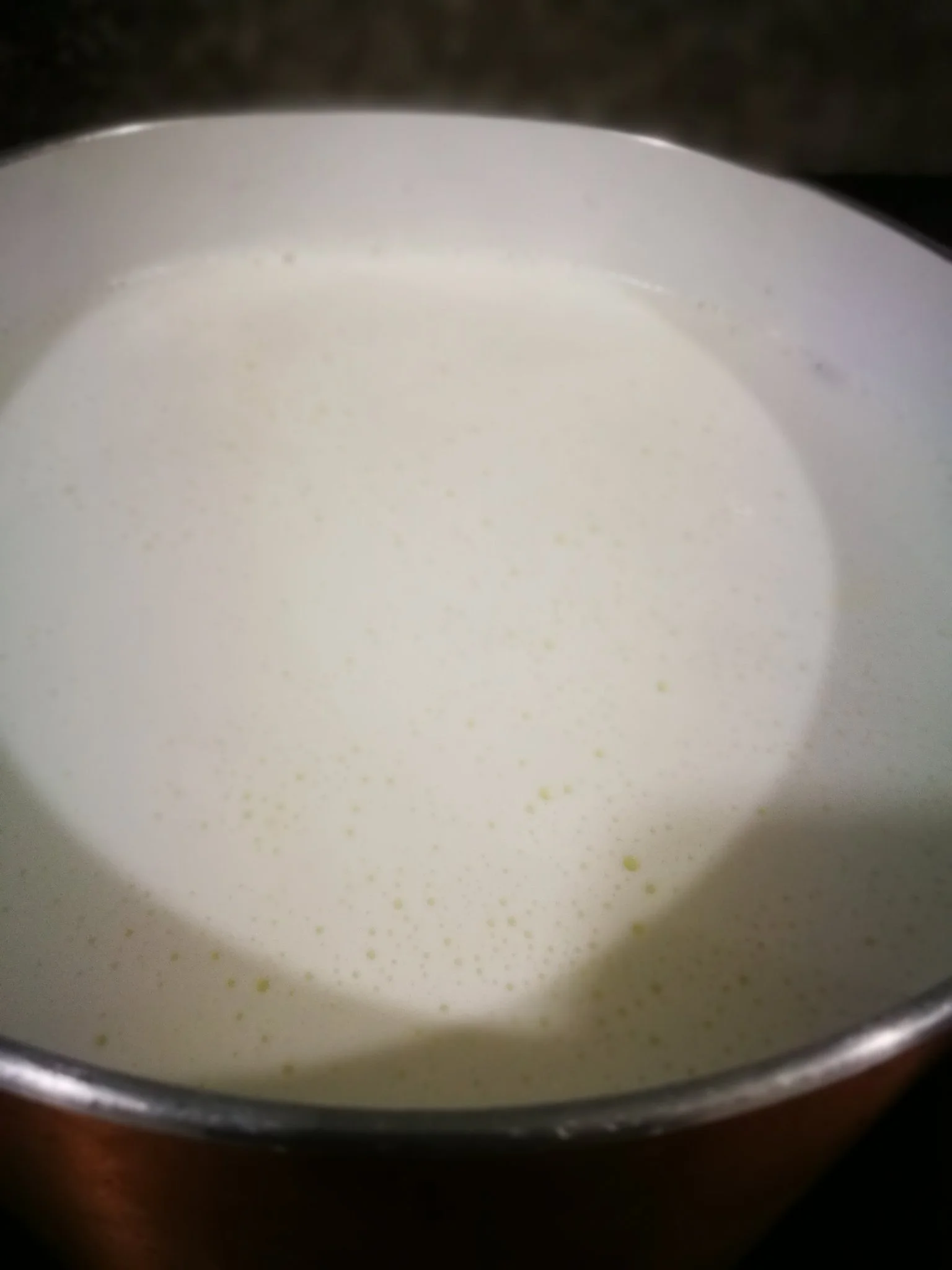 Mientras tanto,la leche soon-to-be-ricotta ya empezó a echar burbujita tímida.