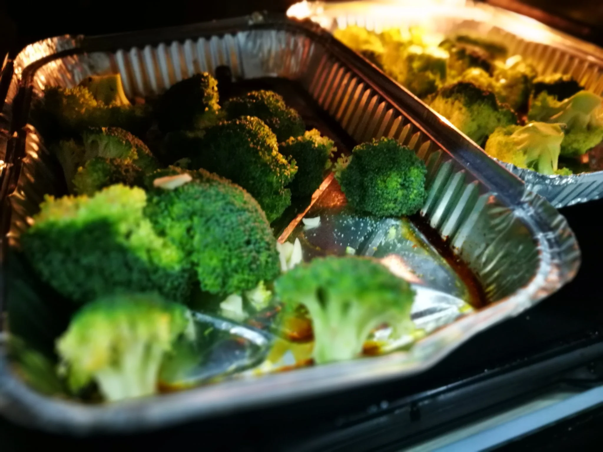 Como el horno estaba CALIENTE, y no se debe desaprovechar un horno CALIENTE, puse unos brócolis mientras me metía a bañar.